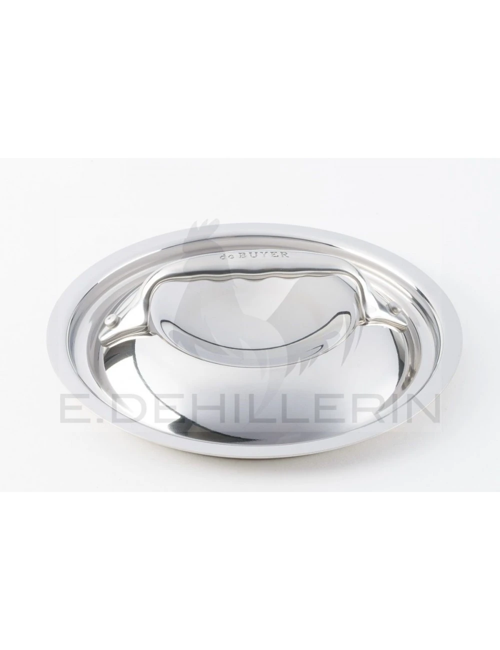 Couvercle acier inoxydable, monture fonte d’inox (monture froide). Toujours associer le couvercle à la gamme d’ustensiles choisie pour une bonne utilisation culinaire.