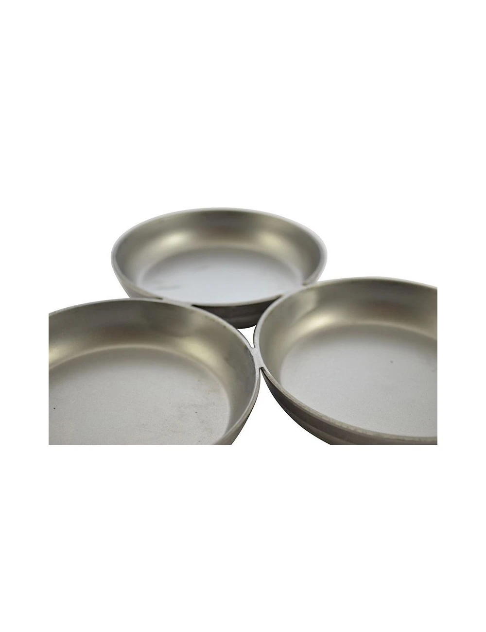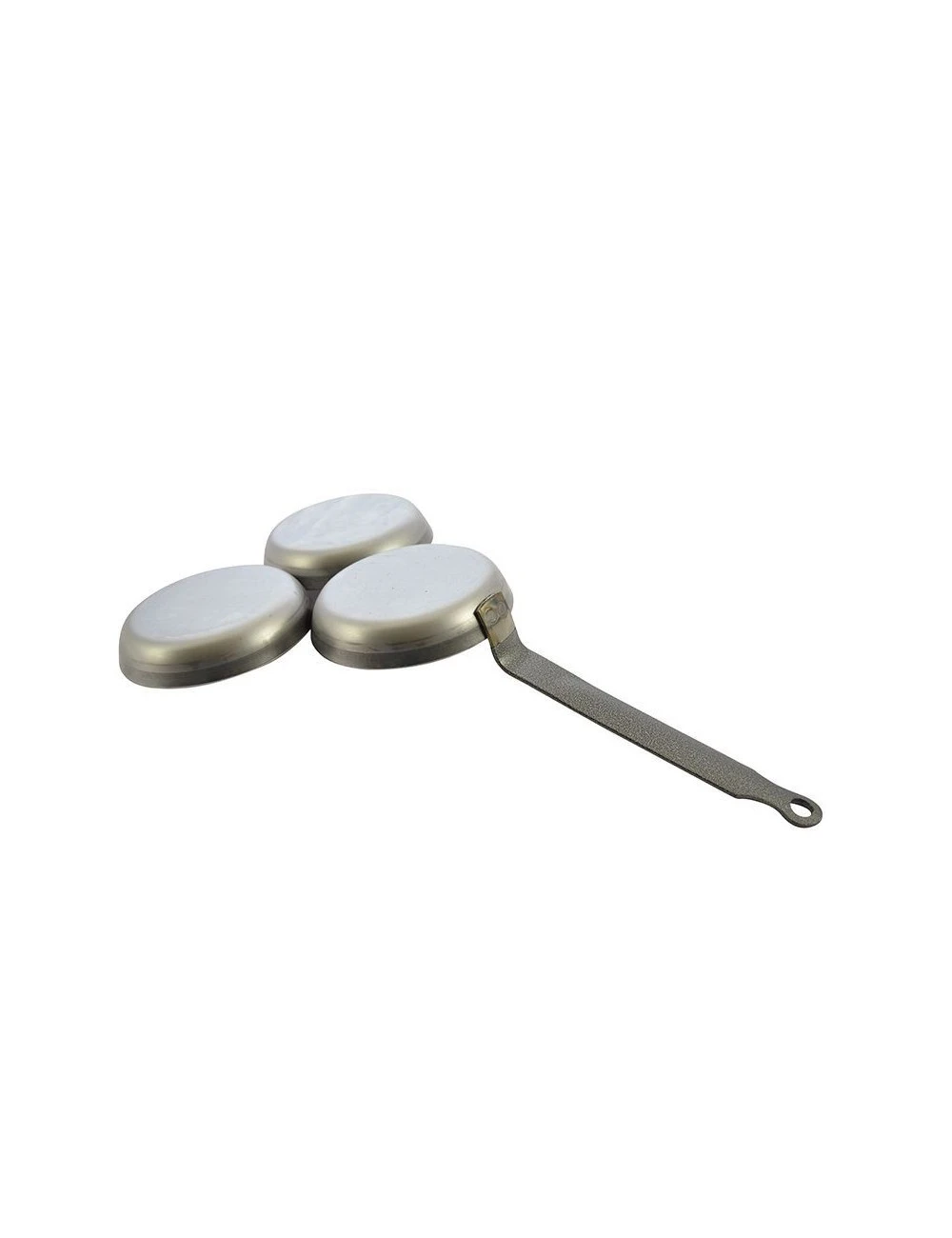 Poêle à blinis (trois emplacements) en tôle noire, monture fer. Idéale pour la cuisson de trois blinis ou de pancakes.