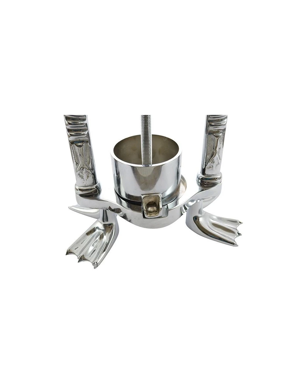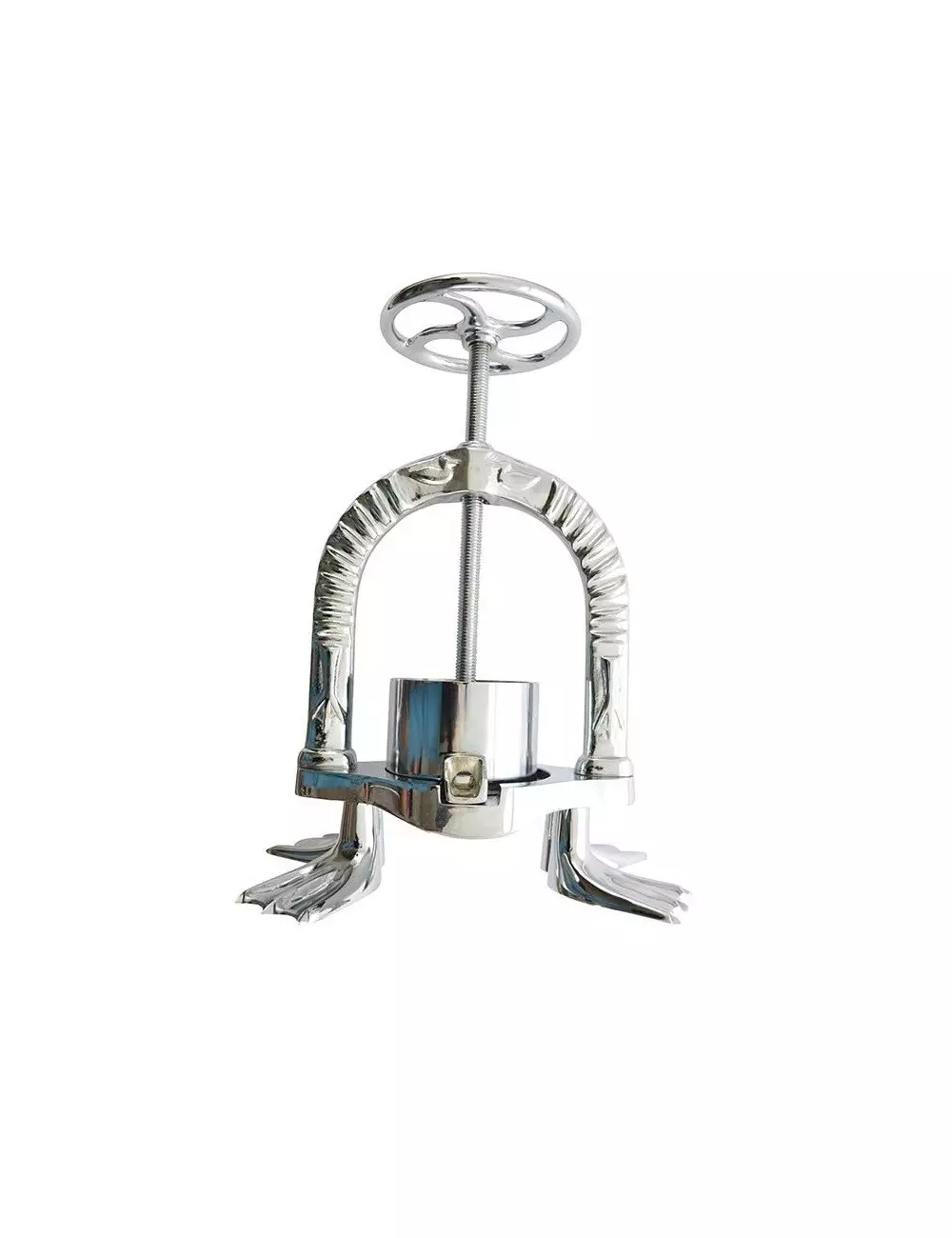 A quoi ça sert ? La presse à canard en laiton grand modèle sert à réaliser la recette du canard au sang. Elle permet de broyer la carcasse du canard pour qu’elle rende son jus et son sang. En tournant la roue, le piston descend et vient écraser la carcasse et les morceaux. Le sang s’écoule alors par l’orifice situé à la base du récipient. Le sang servira ensuite à lier la sauce avec du porto, du beurre et du citron, avant de napper les aiguillettes de canard.