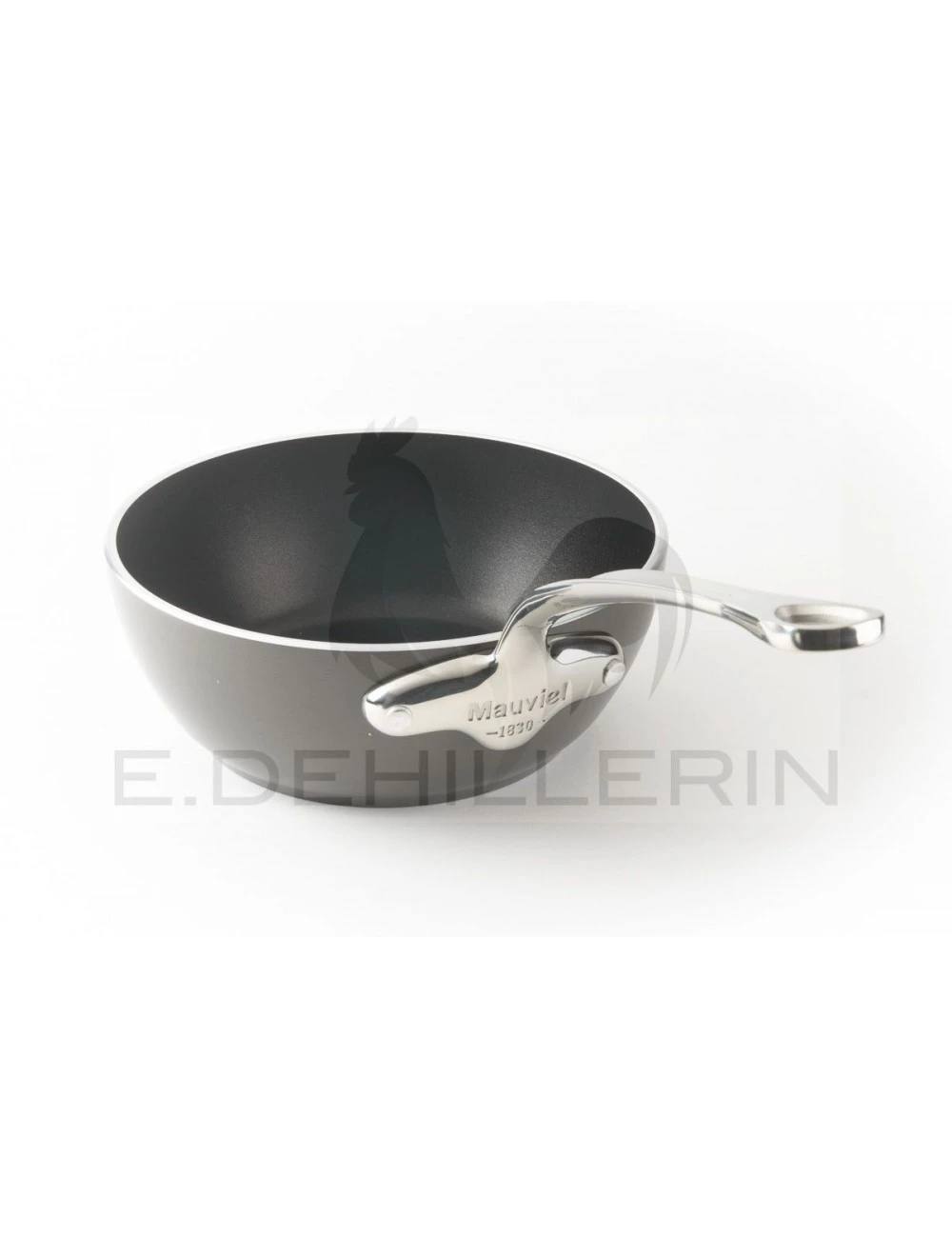 Sauteuse évasée bombée, aluminium anodisé, intérieur céramique, monture fonte d’inox (monture froide). Le revêtement antiadhésif permet de limiter l’apport de matière grasse, tandis que son look contemporain s’accorde aux cuisines modernes. Compatible tous feux dont induction. Diamètre 20 cm.